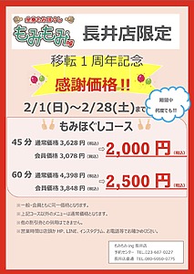 おかげさまで「もみもみing長井店移転1周年を迎えることができました。