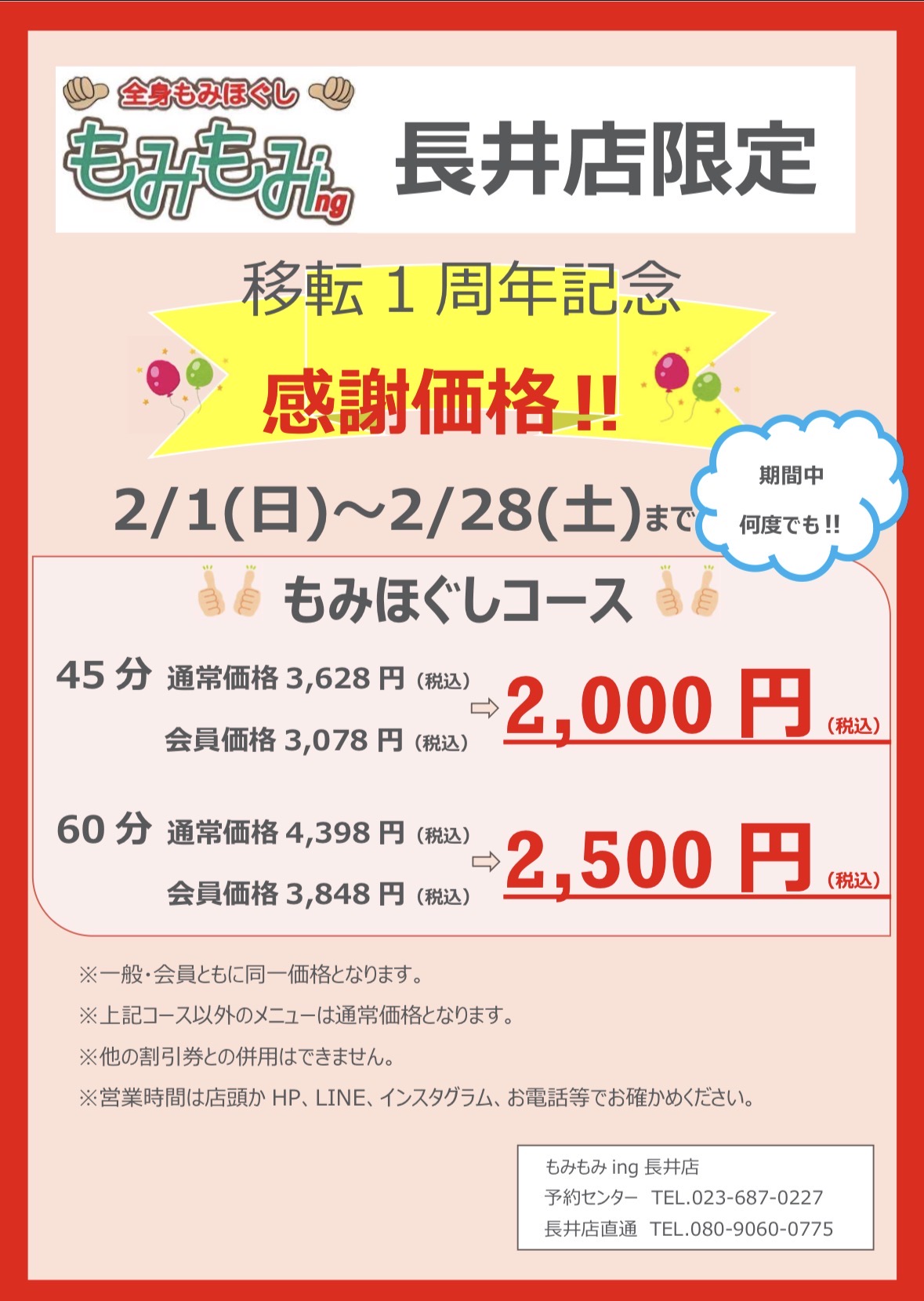 【長井店限定】移転1周年記念キャンペーン