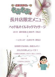 【もみもみing 長井店 限定メニューキャンペーンのお知らせ】